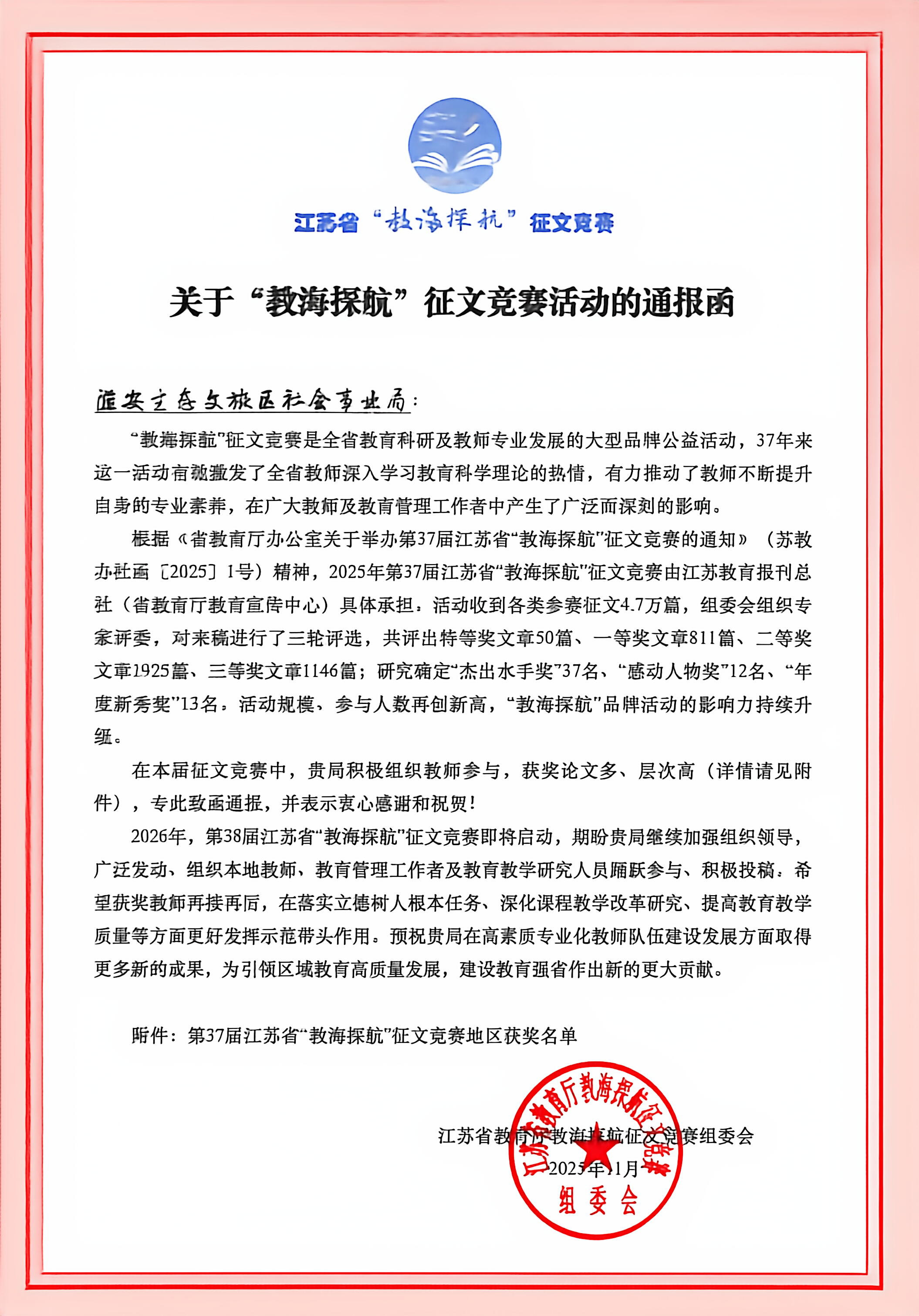 我区教育系统在第37届省“教海探航”...